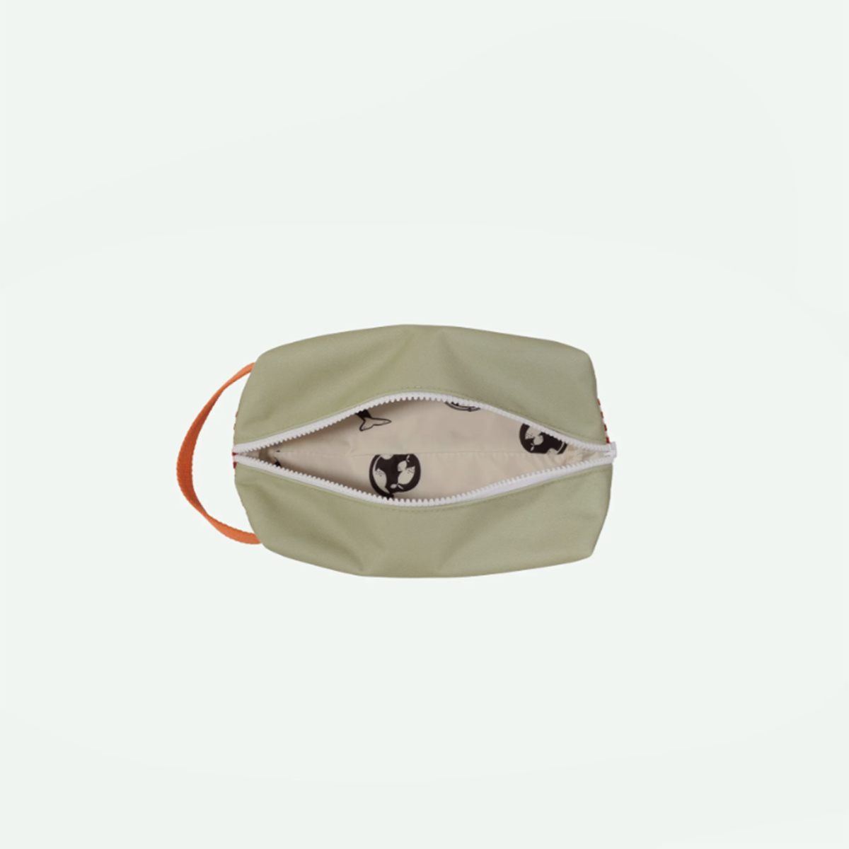 All’interno trovi una fodera impermeabile con un motivo disegnato a mano. La pratica maniglia lo rende facilissimo da trasportare ovunque.