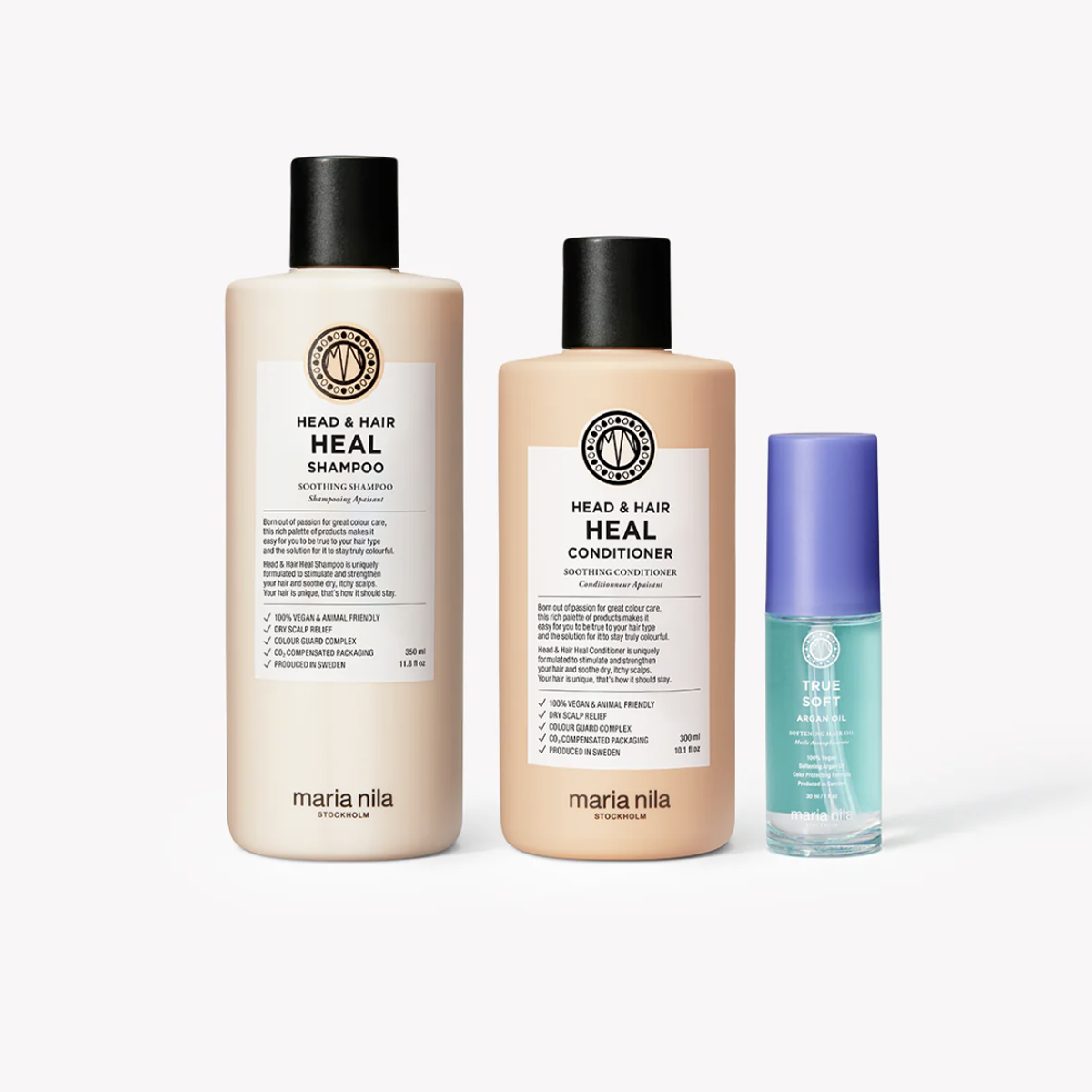 La linea Head & Hair Heal, formulata con lenitiva Aloe Vera, allevia secchezza e prurito stimolando i follicoli per migliorare la struttura del capello. Ha una fragranza floreale priva di allergeni con note di gelsomino, galbano e tiglio. È protettiva del colore, aiutando a ridurre la perdita dovuta a lavaggi, styling, raggi UV e radicali liberi.