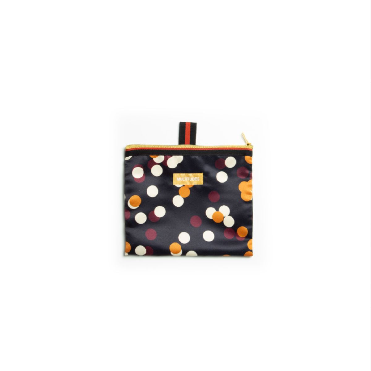 La pochette è realizzata con un tessuto effetto seta in 100% poliestere, con chiusura dorata a cerniera. Perfetta per trasportare le chiavi e altri piccoli oggetti da tenere al sicuro nella tua borsa oppure come custodia per riporre i tuoi accessori.