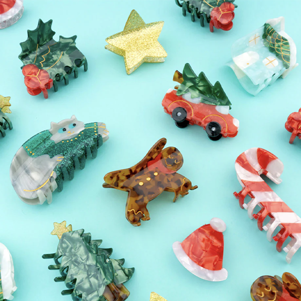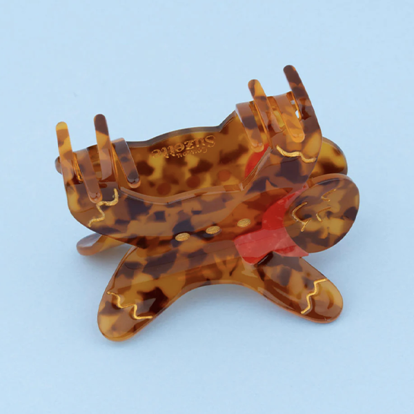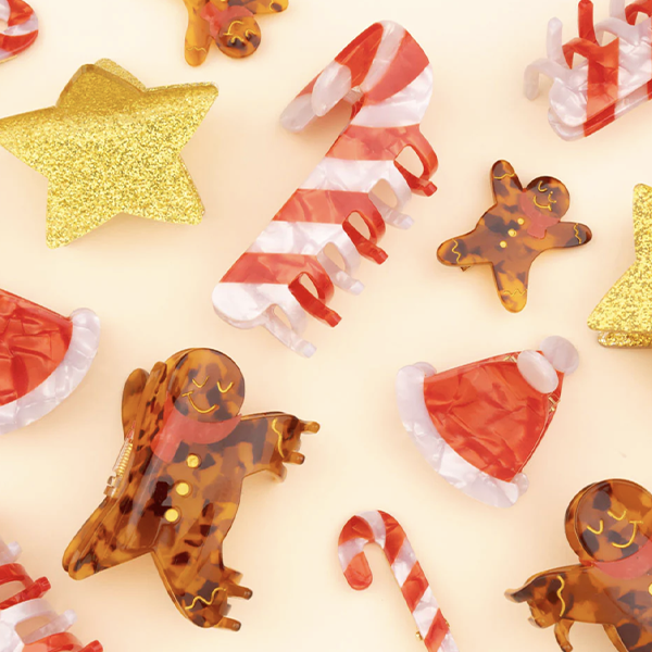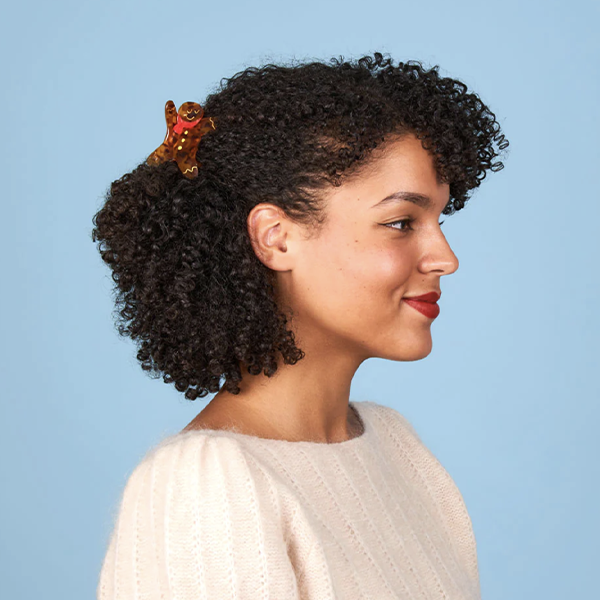 Cosa sarebbero le vacanze senza i gli omini pan di zenzero appena sfornati? Celebriamo questi biscotti di pasta frolla natalizi e il loro delizioso profumo di cannella con un mollettone per capelli abbinato e il suo design a guscio di tartaruga, sciarpa rossa e dettagli dorati.