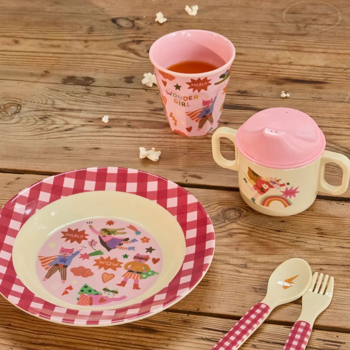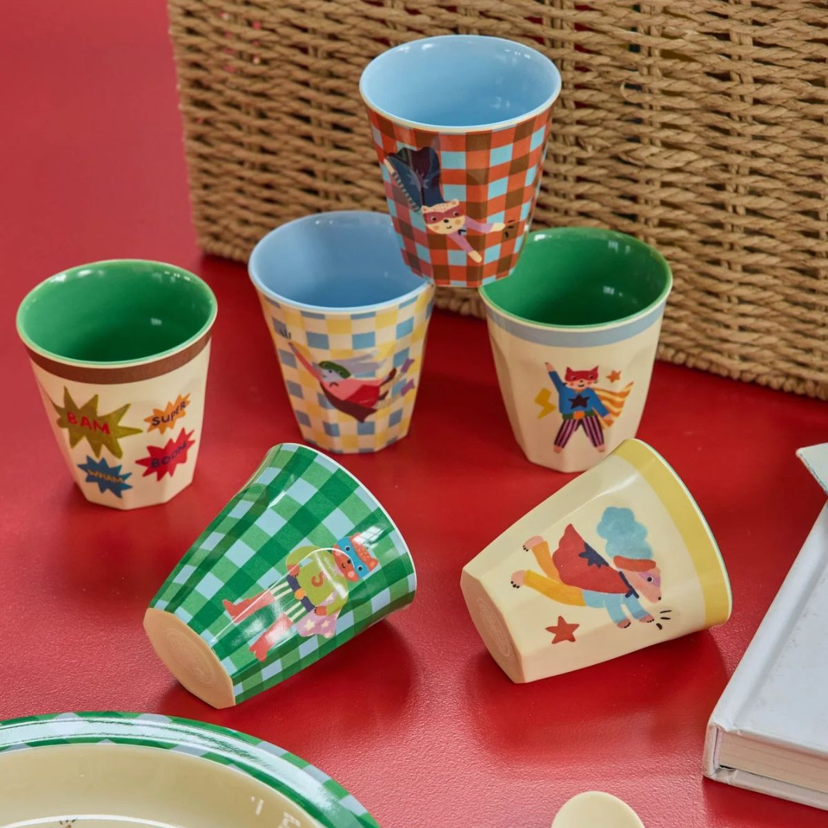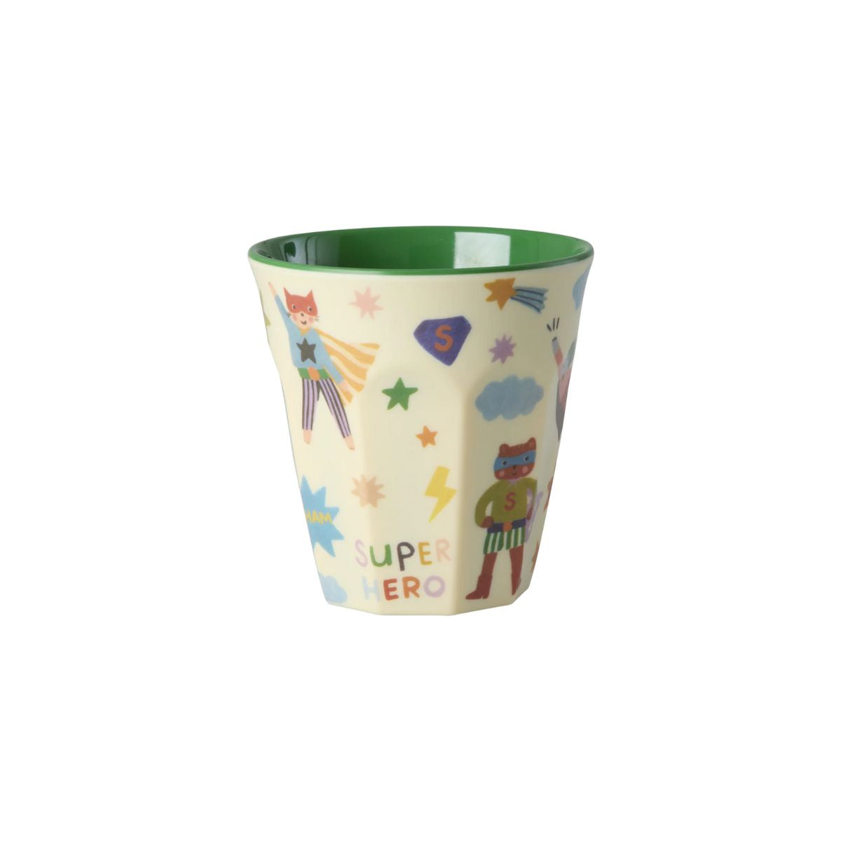 Gusta ogni sorso con la tazza media rosa e verde... è piena di supereroi, stelle e fantastici fulmini ed è realizzata in un pratico materiale, la melamina - perfetto per le piccole mani curiose! La melamina è durevole ed ideale per l'uso quotidiano grazie alla sua resistenza e alla facilità di pulizia. Questo prodotto non è adatto al microonde.